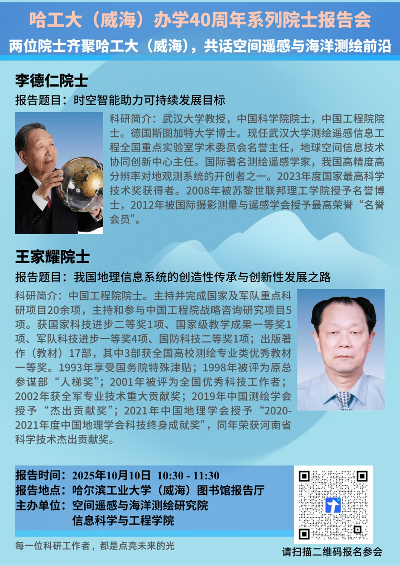 本次報告會是哈爾濱工業(yè)大學在威海辦學40周年系列活動的重要組成部分,期待廣大師生與院士面對面交流,拓展學術視野,激發(fā)科研熱情!